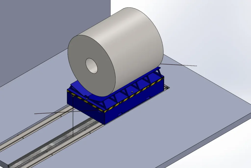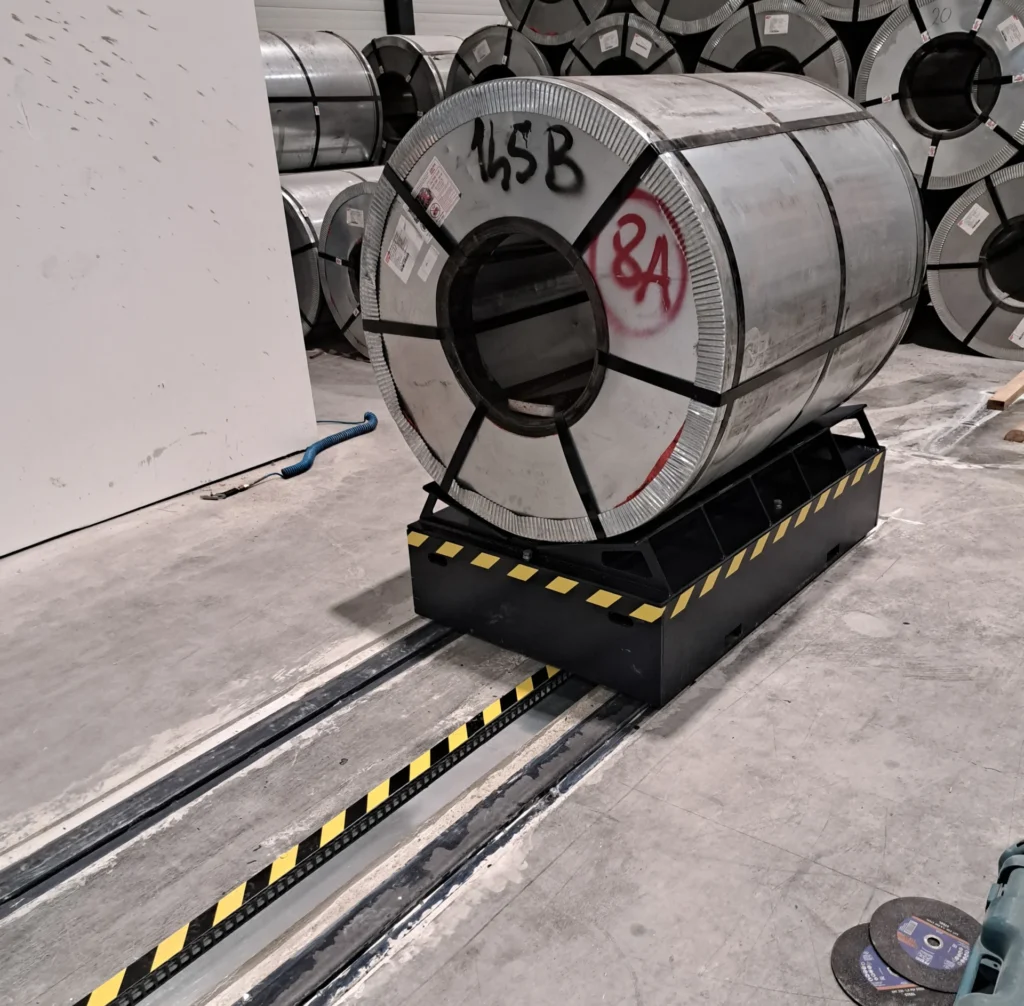 Rješenje koje je implementirano kod klijenta kako bi se olakšao transport teških roli lima iz skladišta u proizvodnju. Teretna kolica su u potpunosti motorizirana te se nalaze na ukopanim tračnicama. Radni hod kolica iznosi 8,5m dok je nazivna nosivost 15t. Kolica su opremljena optičkim senzorima s prednje i zadnje strane u svrhu detektiranja prepreka i automatskog zaustavljanja. Također, kolica se automatski pozicioniraju u krajnjem položaju.