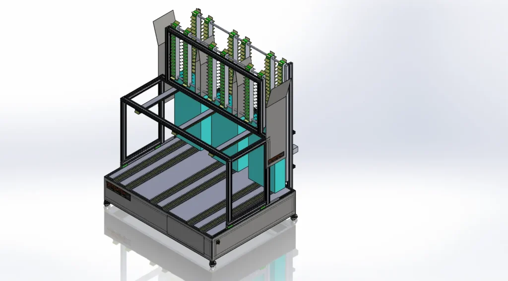 Problem kojega je klijent imao je oštećivanje XPS ploča kod slobodnog pada prilikom otvaranja alata. Naše idejno rješenje je bila neinvazivna metoda sa vertikalnim četkastim transporterom.