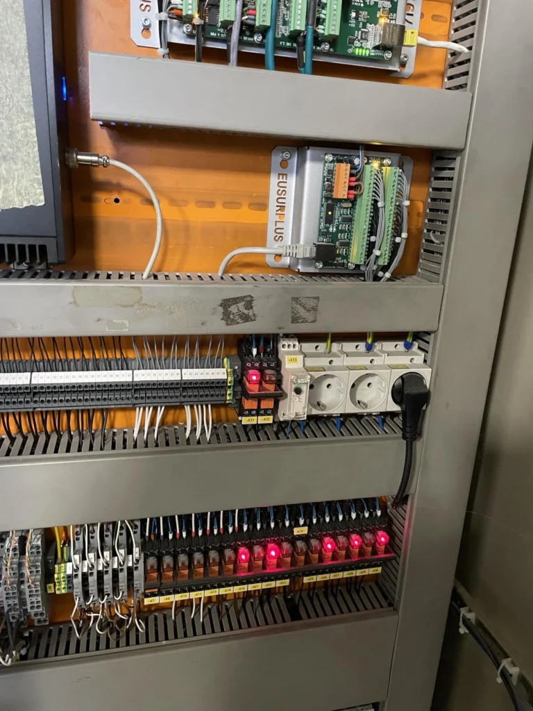 Odradili smo električno i mehaničko premještanje određenih segmenata linije za pakiranje EPS-a kod klijenta. Nakon preseljenja, na liniji je napravljena preinaka za mogućnost pakiranje dodatne dimenzije paketa. Za tu svrhu na liniji su izvršene promjene na originalnom PLC programu.