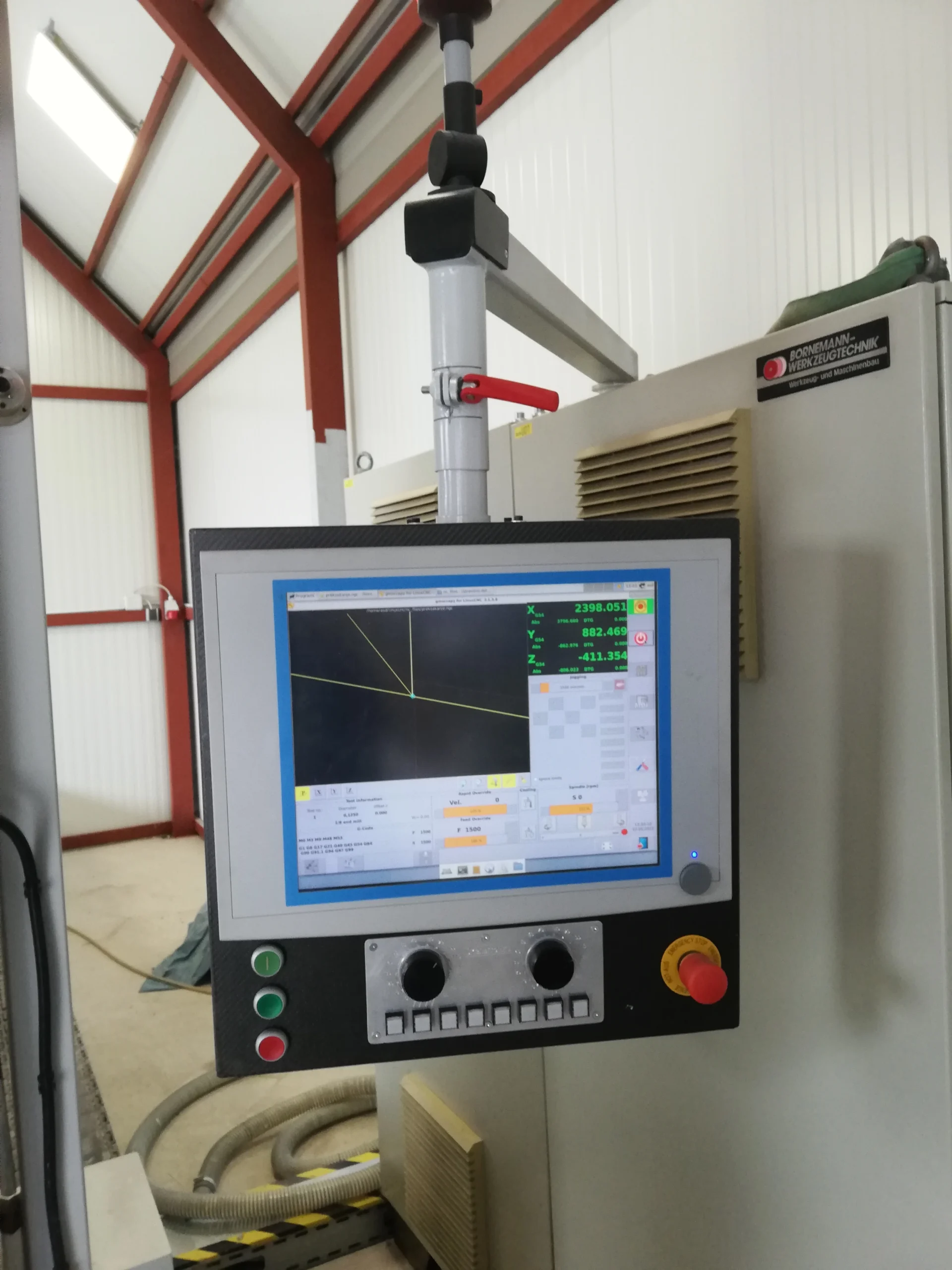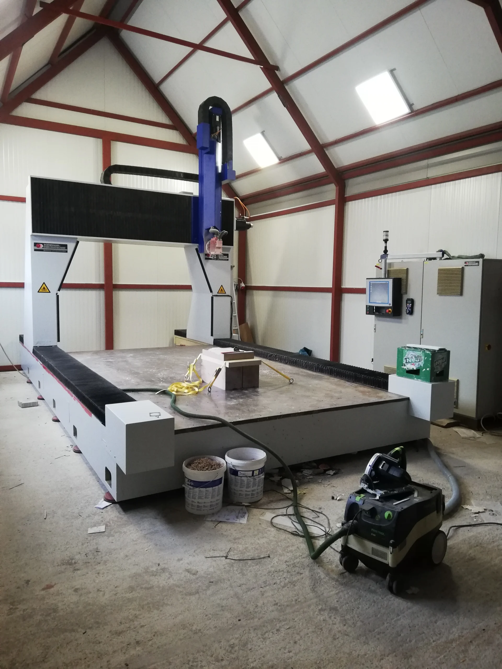 Troosna portalna glodalica sa ručno nagibnom glavom. Izvršena je zamjena glavnog računala, interface kartice te sklopne opreme. Servomotori kao i analogna servo-pojačala nisu bili zamjenjeni. Na stroj je  stavljeno novo motorvreteno, bežično upravljanje (handwheel) te je napravljena posebna kinematika za nagibnu glavu koja omogućava pomicanje osi pod određenim kutem (tilted plane). Novo upravljanje je izvedeno sa LinuxCNC te MESA interface karticama. Jedna od specifičnosti ovog stroje je da na jednoj osi ima dva pogonska servomotora zbog velikog razmaka između vodilicama.